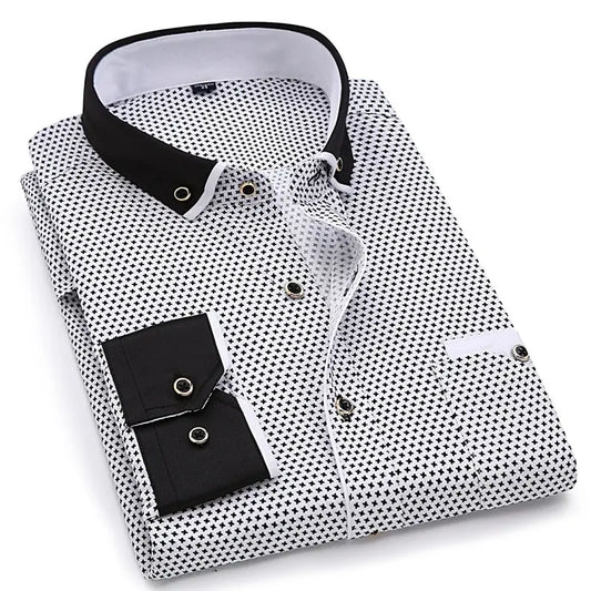 Casual Long Sleeved Printed shirt Slim Fit Male Social Business Dress Shirt Brand Men Clothing